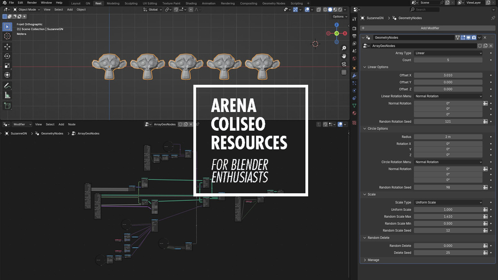 See how Arena Coliseo was crafted and download the clay scene for free. If you're up for a deeper exploration, get the limited pack with a breakdown of key Geometry Nodes elements, or go all in with the complete pack, featuring the full Blender file, textures, animation, and LUTs. Your support helps bring more projects like this to life!